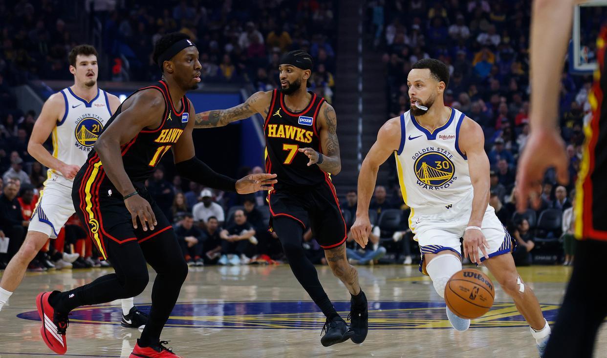 库里全场21投11中,外线11次出手仅命中3球,罚球6罚全中拿下31分3篮板5助攻,伴随3次失误,个人身体状态保持得不错,突破后的终结效率相当亮眼,篮下甚至完成过拉杆反篮的精彩进球。只是外线手感迟迟没打开,防守端因为身材短板,频频被老鹰的侧翼和锋线针对性针对,攻防两端的效率都不算理想。更关键的是他下场休息的时段,勇士进攻彻底陷入停滞,没有任何能稳定取分的点,球队胜负基本绑定他的状态,这样的单核依赖早已是勇士难以根治的隐患。