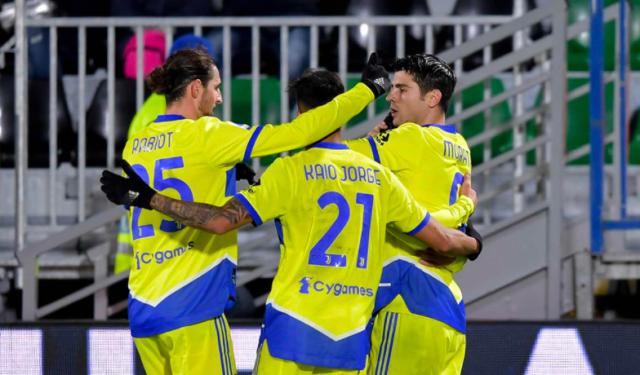 尤文图斯阵容:1-什琴斯尼/2-德西利奥、19-博努奇、4-德利赫特、17-卢卡·佩莱格里尼(75'12-桑德罗)/27-洛卡特利(86'46-索莱)、25-拉比奥/11-夸德拉多、20-贝尔纳代斯基(75'30-本坦库尔)/10-迪巴拉(11'21-卡约·若热(75'18-基恩))、9-莫拉塔